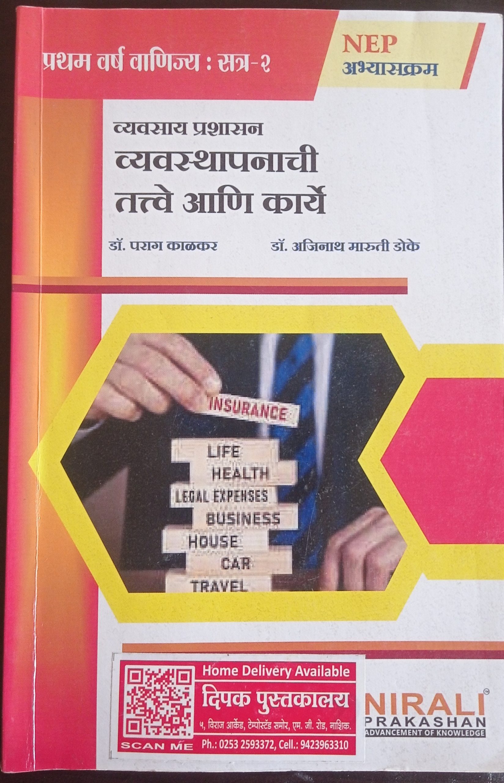 Ajinath Doke’s “Principles and Functions of Management”, published by Nirali Prakashan, is a well-structured textbook designed to meet the academic needs of FYBCom students. The book simplifies the core principles of management and provides a solid foundation for learners new to the subject.